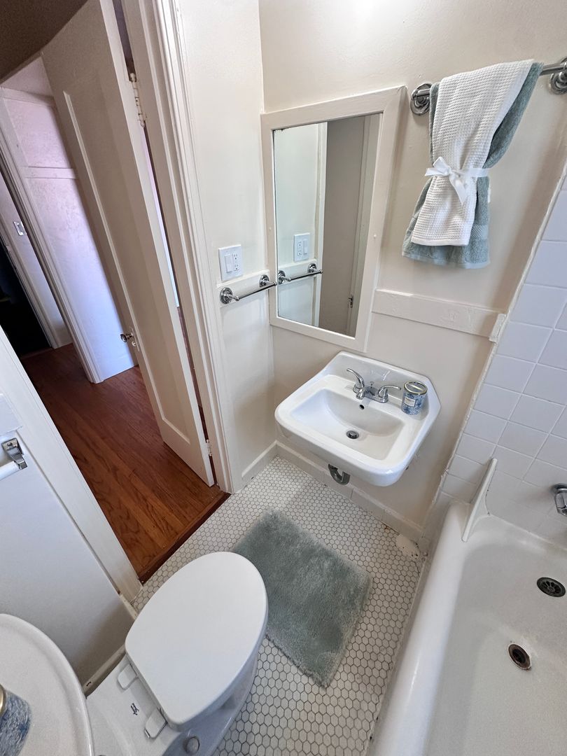 This charming top-floor studio offers a unique blend of vintage character and everyday convenience. The studio features ample natural light, and period details that create a warm and inviting space.
