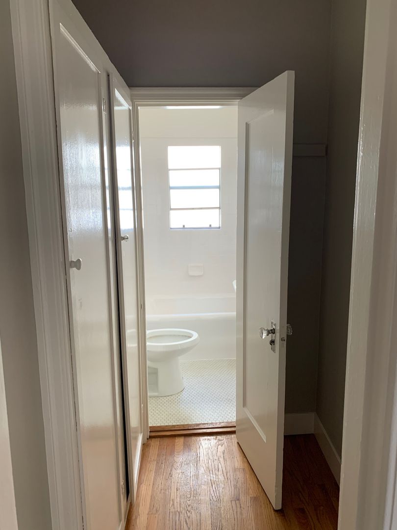 This charming top-floor studio offers a unique blend of vintage character and everyday convenience. The studio features ample natural light, and period details that create a warm and inviting space.