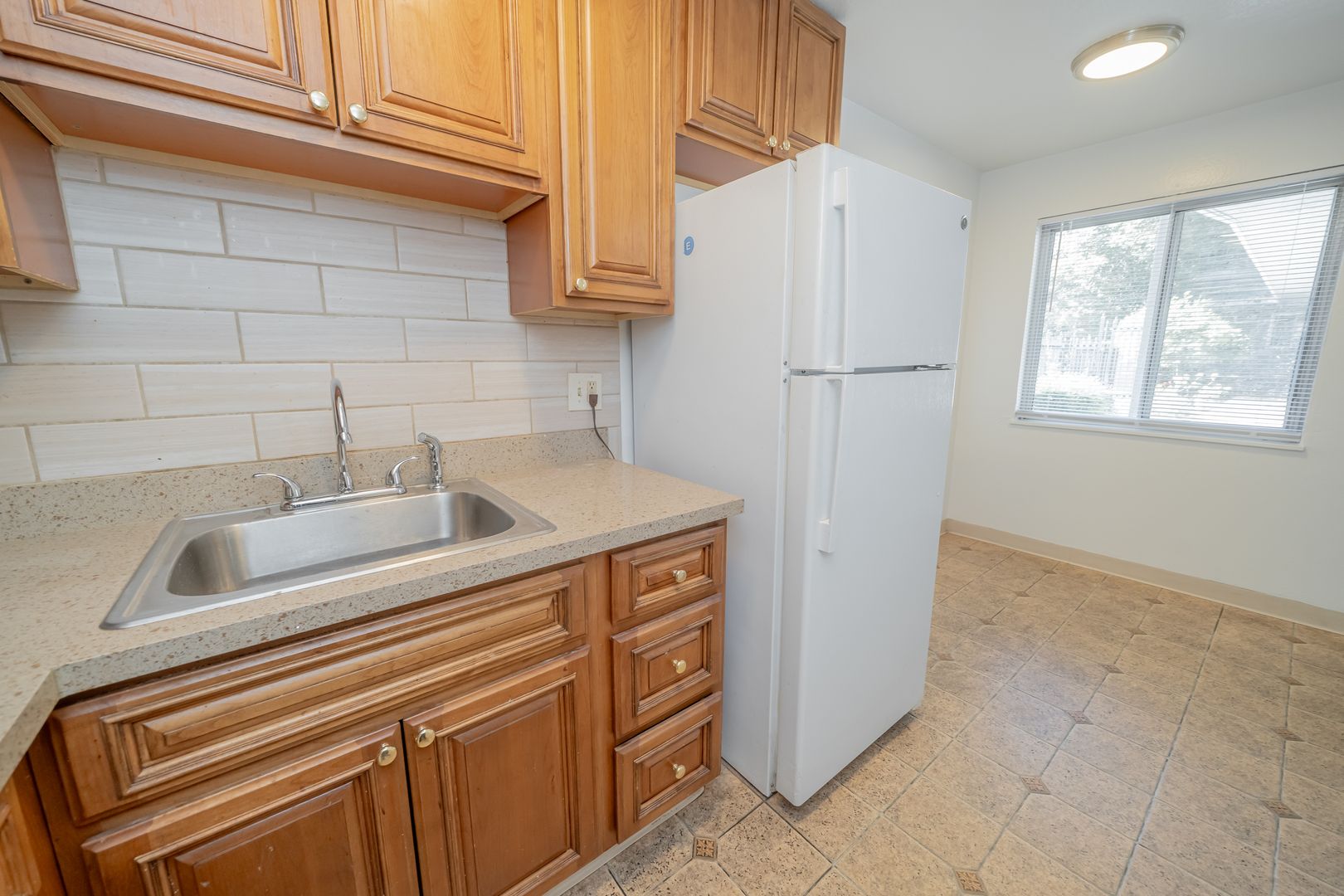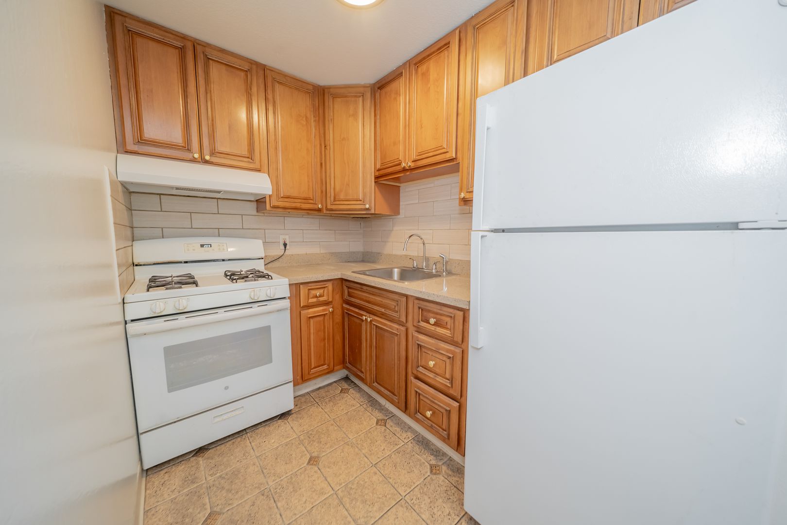 • Eat-in kitchen with updated countertops and black splash