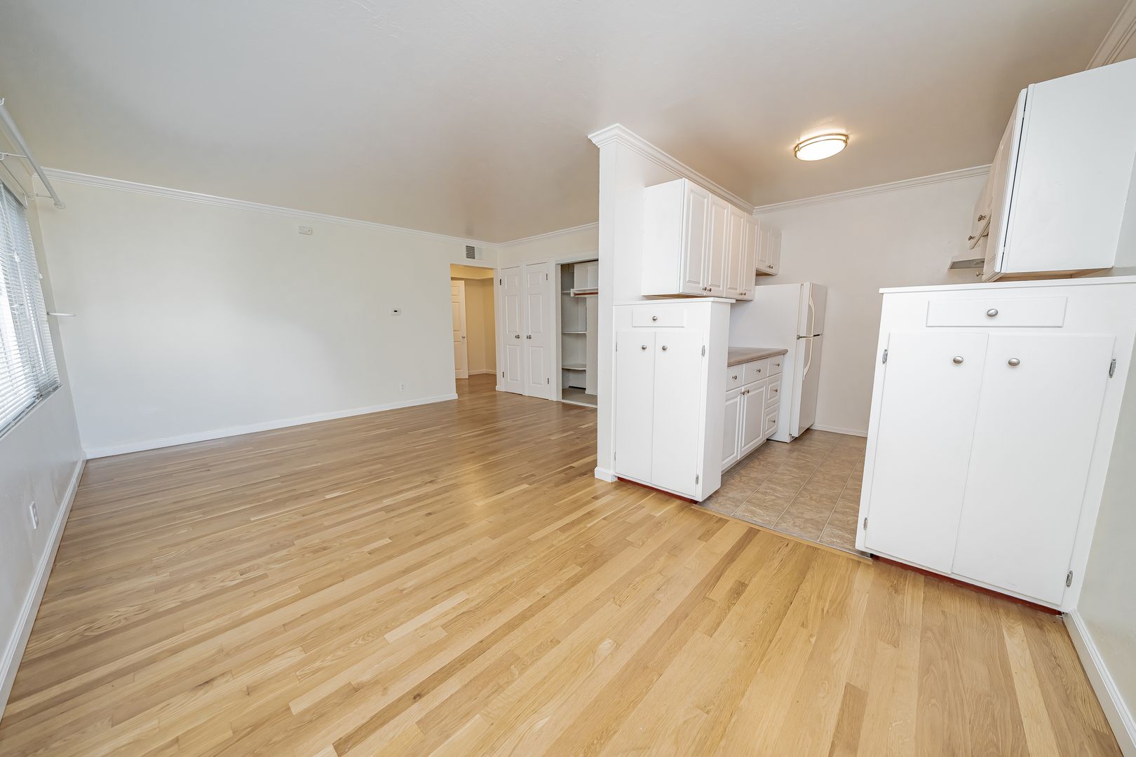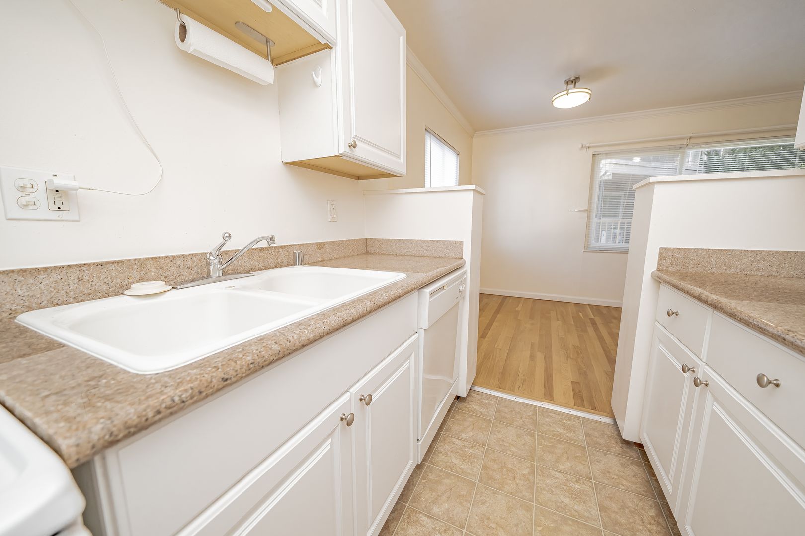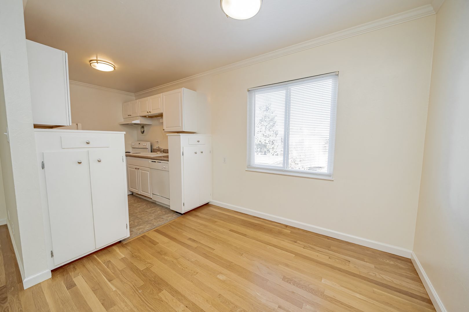 • Hardwood floors throughout the living areas, with carpet in the bedroom for added comfort